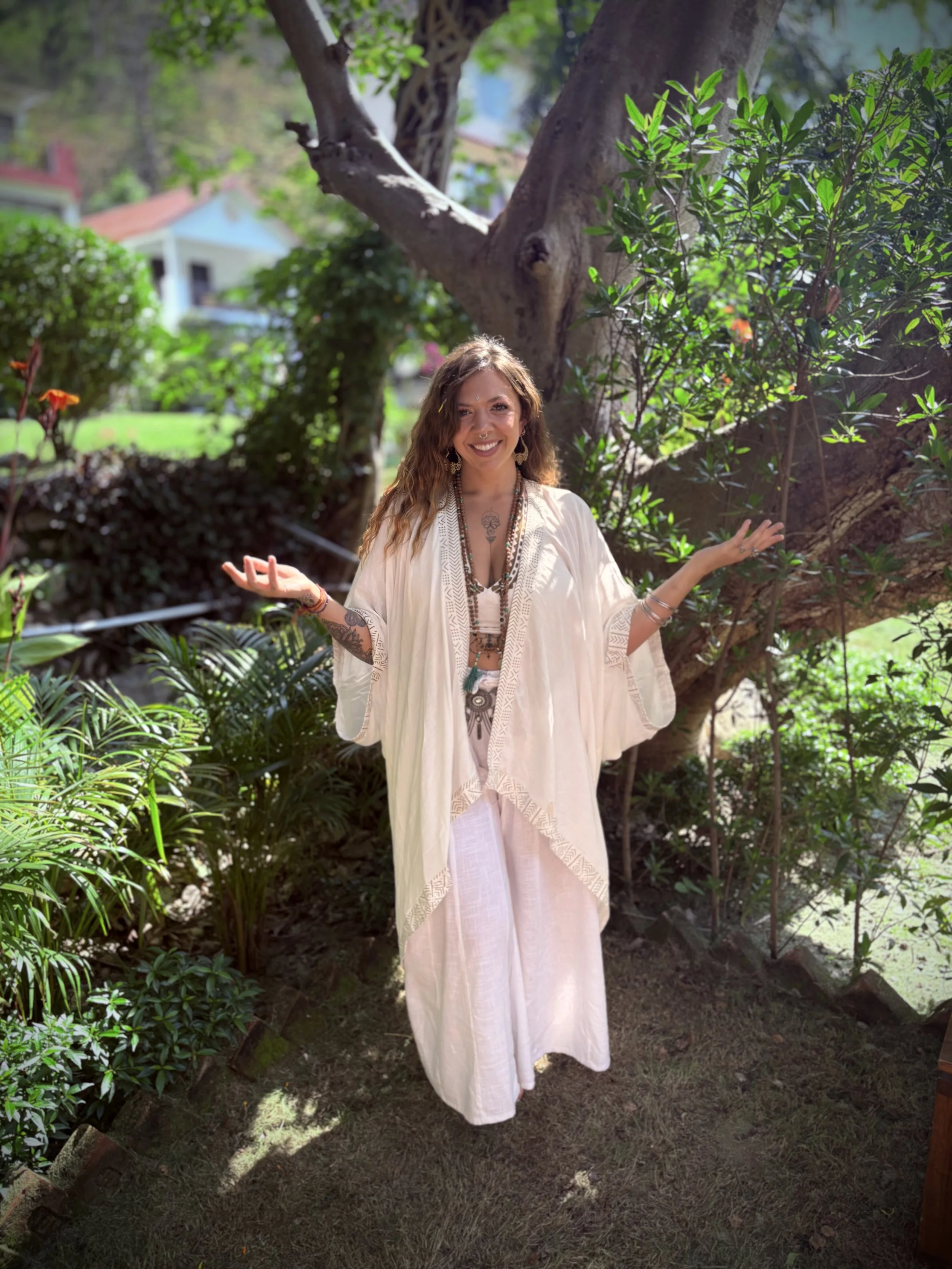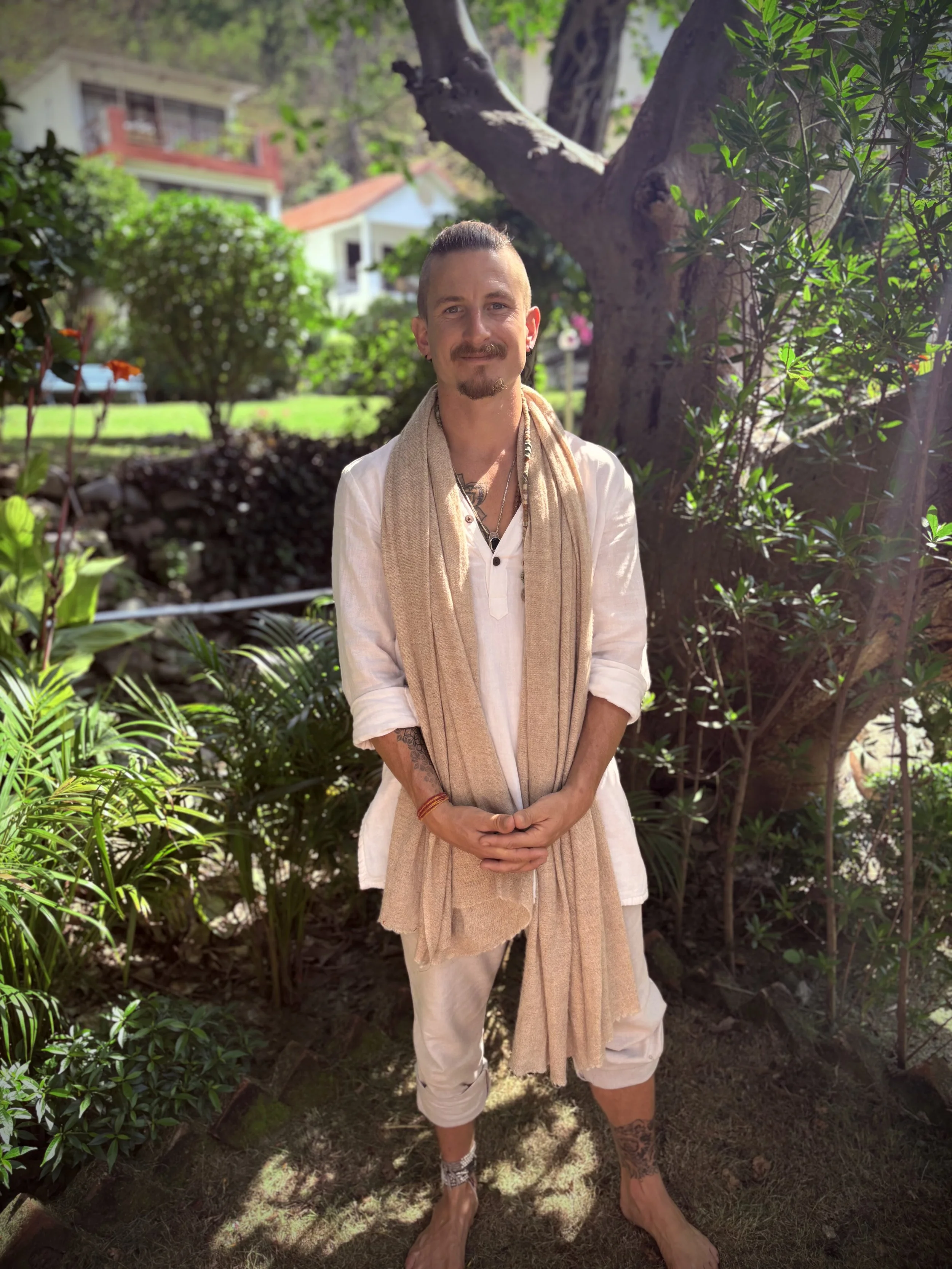 We bring over 500 hours of advanced RYT training in the Himalayas with our master teacher, Anandji Mehrotra, immersed in the heart of ancient yogic technologies; Including mantra, advanced kriya, somatic release techniques, asana, and pranayama. We have an additional 500 hours of RYT in therapeutic, ceremonial, hatha, and yin yoga. These sacred practices blend ancient wisdom, sacred ceremony, and modern healing techniques, allowing you to deepen your connection to self, earth, and spirit. Join us to experience the transformative power of ritual, breath, kriya, and movement as a path to Inner harmony, embodied presence, and profound spiritual evolution.